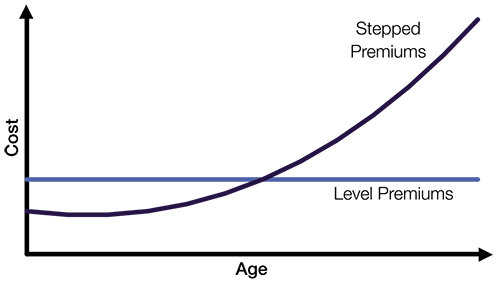 Stepped premiums are usually lower in the early years of insurance, but level premiums may be more cost effective over the longer term.