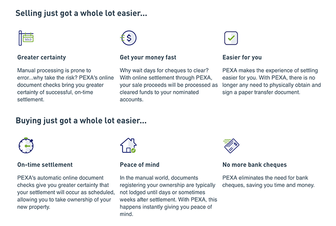 Property Exchange Australia (PEXA) is currently Australia’s only online property document exchange platform. It assists members – such as lawyers, settlement agents and financial institutions – to lodge documents with Land Registries and complete financial settlements electronically.